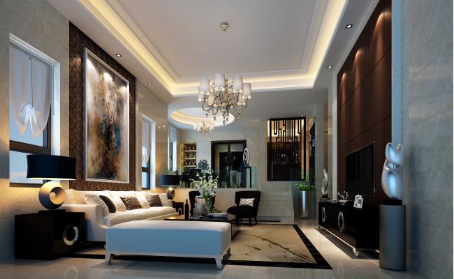 本案業主是一位成功的企業家,對家居設計有很強的自我喜好,喜歡歐式的線條帶來的層次感??臻g設計時,將整個花園打掉重新設計樓板,解決負一樓的采光和通風問題,將原本黑暗的空間做到通風和采光相當好;把一樓的整個空間打通,橫向及縱向都達到視覺的最大優化。二樓保留了一個主人房和小孩房,三樓保留一個小孩房。